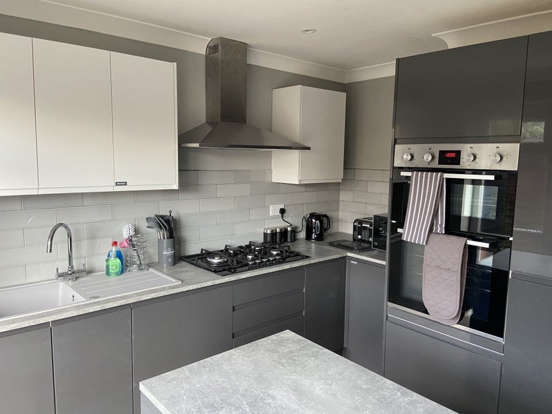 The shared kitchen comes fully loaded with all pots, pans, crockery, cutlery and glassware. There is also a dishwasher, tumble dryer and washing machine ready to go.