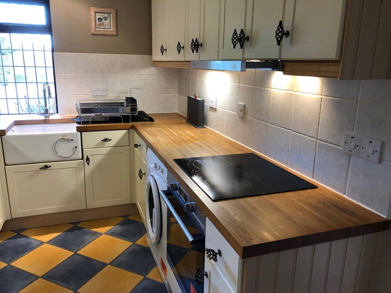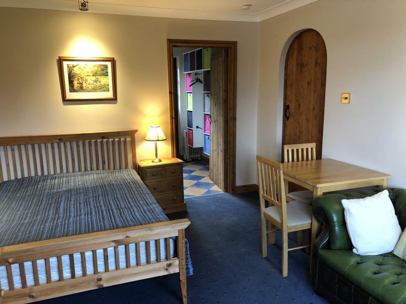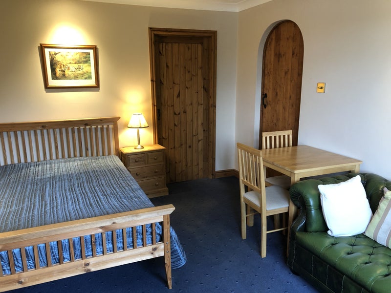 Furnished. Bedroom/living area, fully fitted kitchen, with new washer/dryer, oven, hob, fridge/freezer, microwave, toaster and kettle. Fully tiled shower, with WC and wash hand basin.