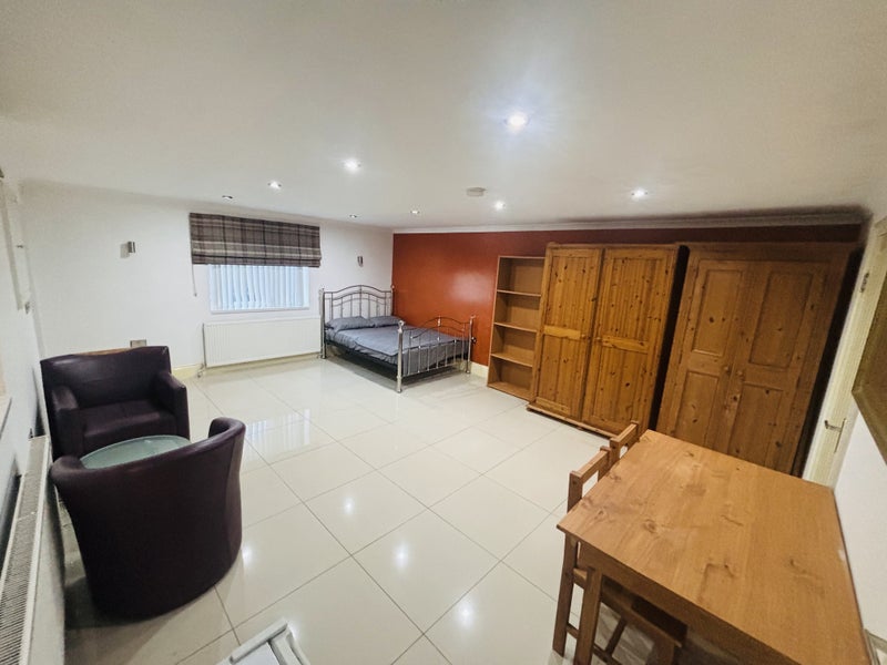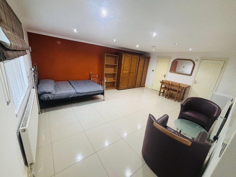 Brand new studio/annex which includes large size bedroom, kitchen, shower room, includes new washing machine, fibre broadband, microwave, fridge, coffee table and sofa seats!