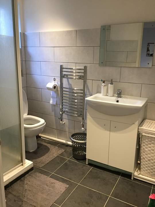 Ensuite bedroom which is very big, with it's own bathroom with a sink, WC and shower.