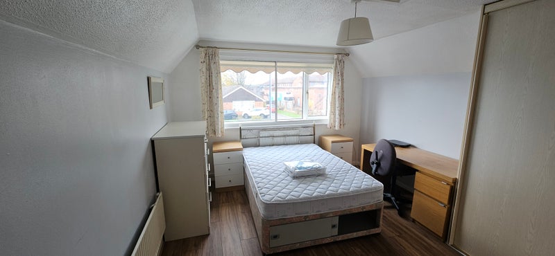 Double Room 4.5m x 3.5m with fitted wardrobes and eaves storage on top floor of a 4 bedroom detached house.