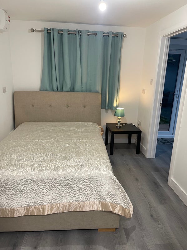 Self contained beautiful refurbished annex ensuite bedroom, large lounge, kitchenette . Shared main kitchen with landlord. Walking distance to town, bus , train station close to all amenities. Looking for quite tidy professional no pork, alcohol or smoking .