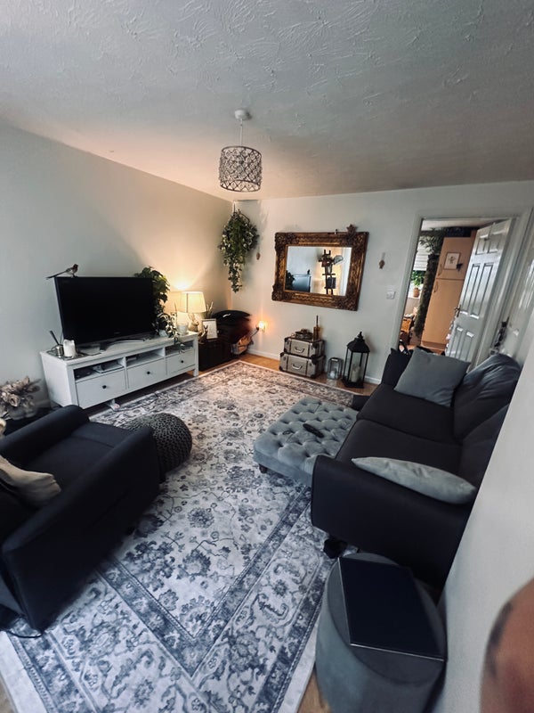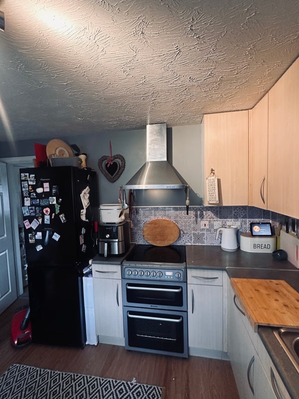 Mid terrace with front parking , newly decorated room with double bed and desk .