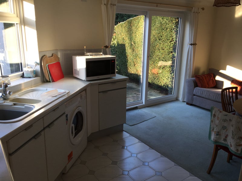 fully furnished. The house benefits from two bathrooms. There is a large fully fitted kitchen with washing machine and tumble dryer and open plan dining area. The property also has a garden with patio and off-road parking and is situated in a cul-de-sac in a nice and quiet area of Old Windsor and within 5 minutes walk of the River Thames. Easy access to bus routes to Windsor and Staines. Also easy access to Heathrow-M25-M4 motorways. Housemates are all professional and extremely pleasant and easy to get on with.