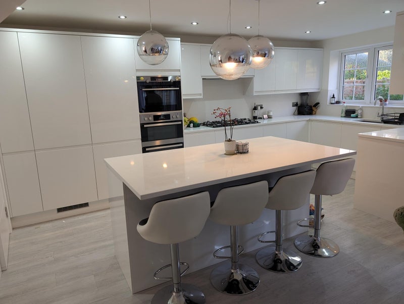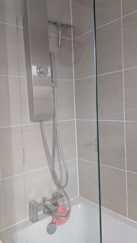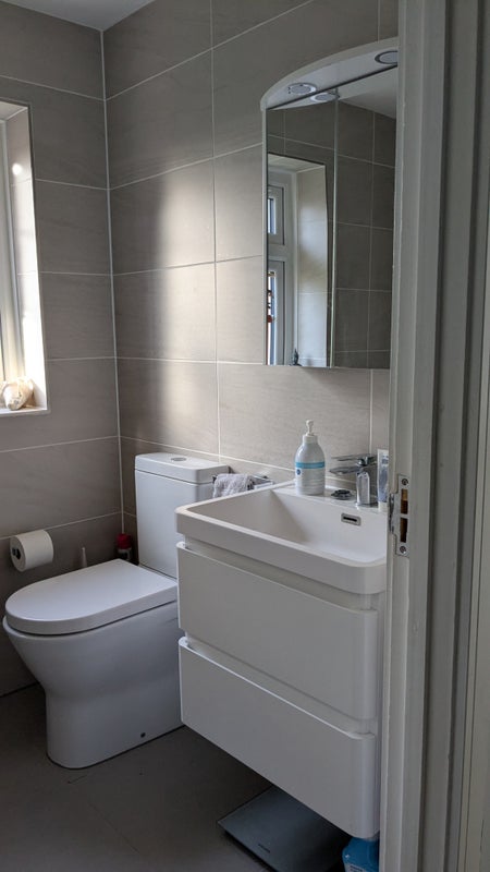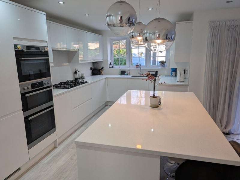 Modern open plan kitchen, bathroom (shared with 2 children,)