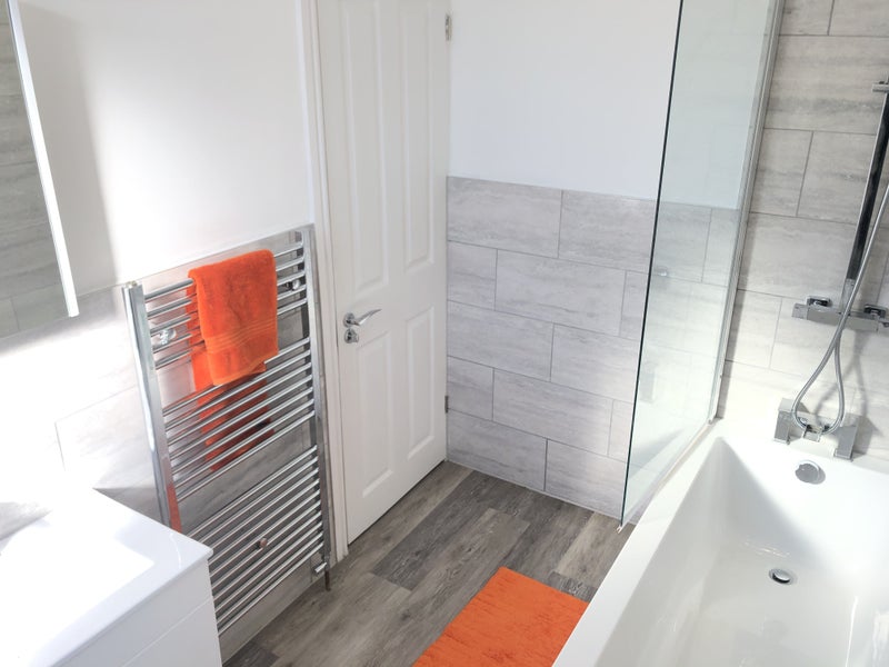 There are three shared shower rooms featuring modern showers, heated towel, WC and vanity sinks.