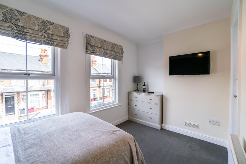 Room 3 😀 - A beautiful first floor room at £630 pcm, available immediately, fully furnished with a double bed & under bed storage, wall mounted SMART TV, bedside table with a lamp, a reading chair, a large wardrobe and a desk & chair.
