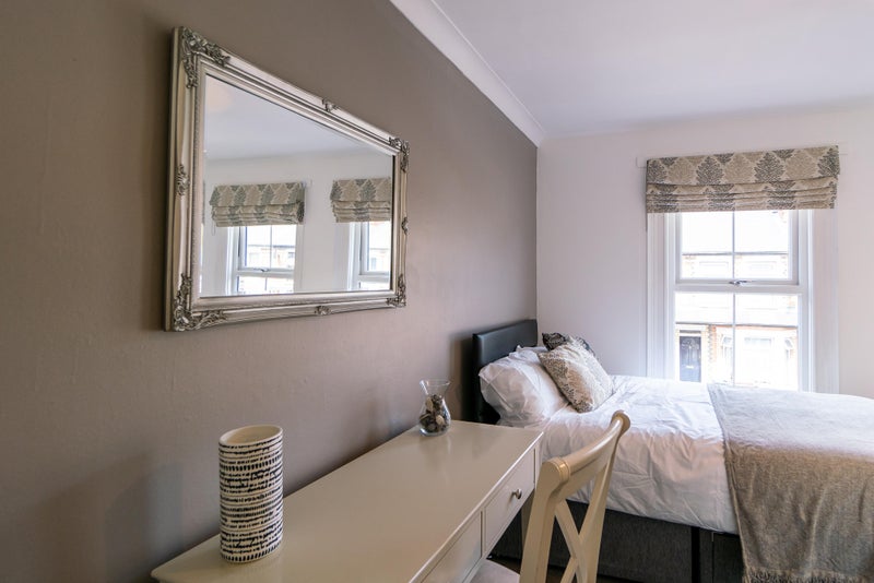 Room 4 😀 - A beautiful first floor room at £670 pcm, available immediately, fully furnished with a double bed & under bed storage, wall mounted SMART TV, bedside table with a lamp, a reading chair, a large wardrobe and a desk & chair.