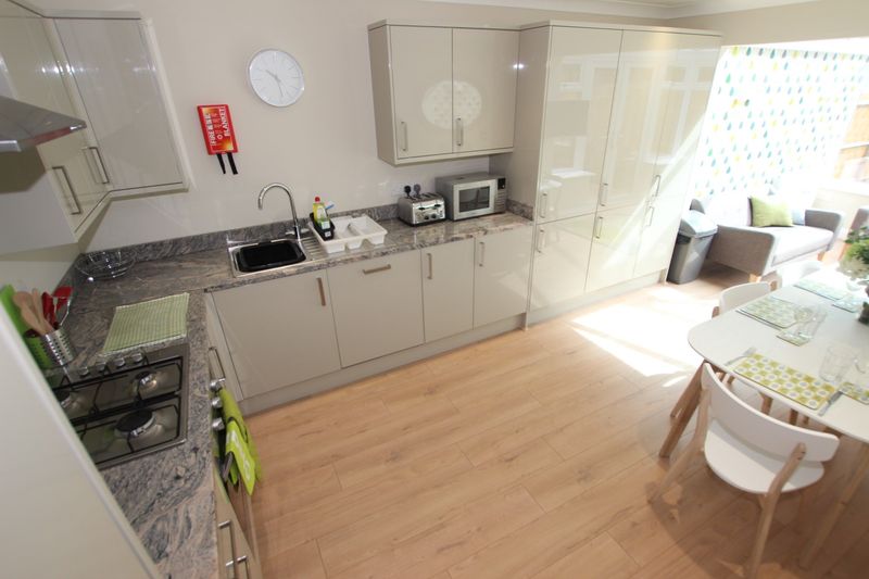 The property has been thoughtfully arranged to a high standard and offers excellent communal and private living spaces. The modern kitchen is fully equipped with two large fridge freezers and comfortable seating for up to six people. There is also a spacious, dedicated laundry room for added convenience.