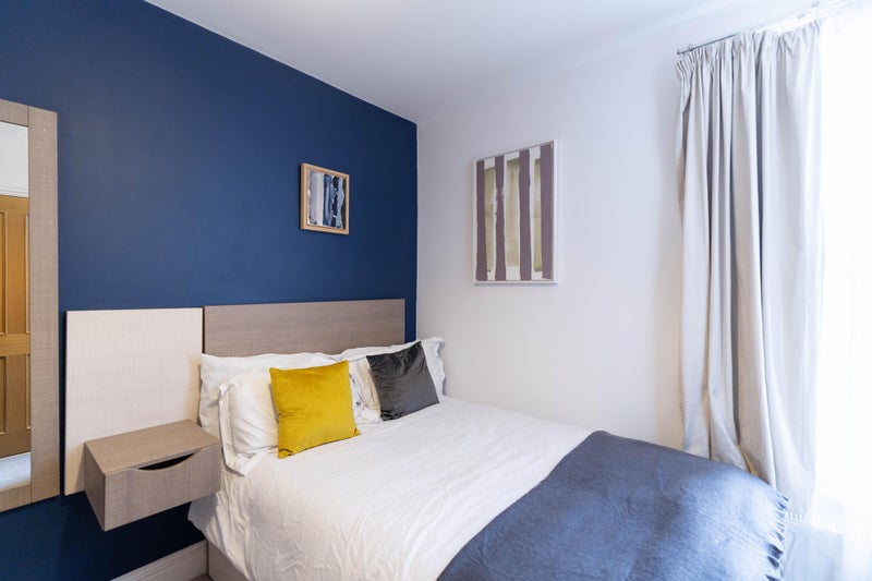 Room 4 😀 - A beautiful first floor ensuite double room for £795pcm, available 28th March 2026, fully furnished with a double bed with under bed storage, a bedside table with a lamp, TV, a wardrobe and a desk & chair. The ensuite has a towel radiator and cabinet for toiletries.