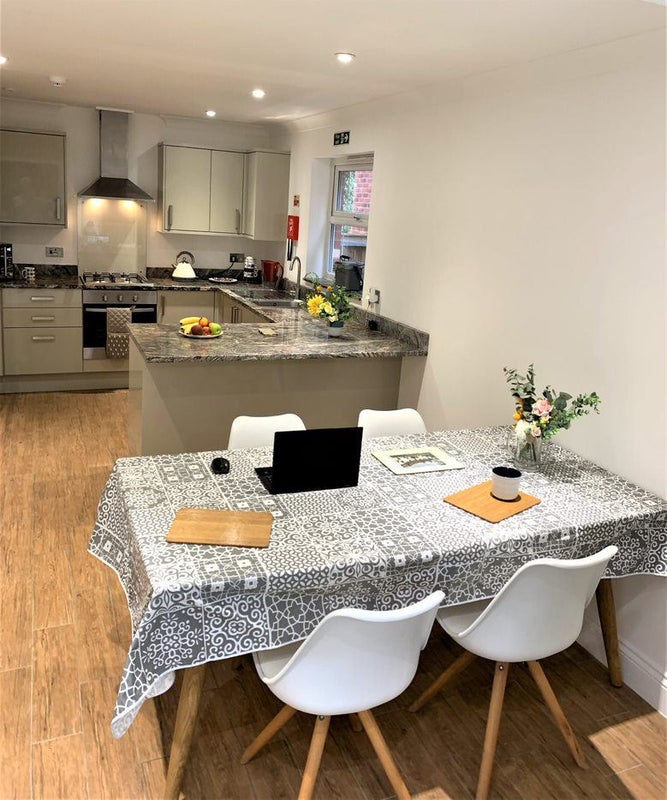 ✔️ Modern Kitchen complete with integrated appliances: Cooker, Dishwasher, Fridge / Freezer, Washing Machine, Microwave & Kettle.