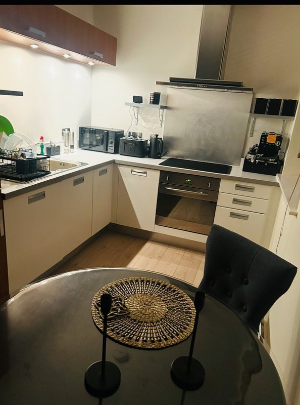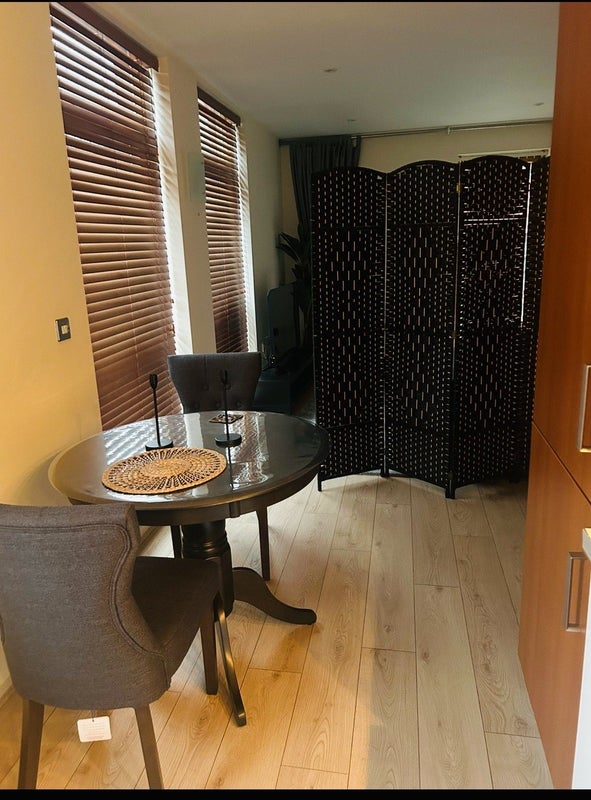 Brand new furniture and mattress , newly done apartment, very clean. Your own kettle and toaster provided. This is a storage bed with four drawers, plus sliding double wardrobe in the room with a shelf and side table.