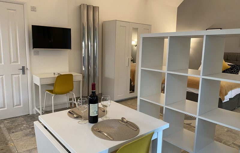 This fully furnished room has been designed to a high standard with a charming vintage touch with garden on the entrance, featuring: