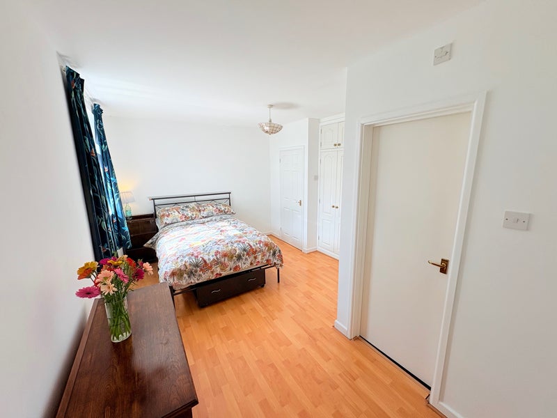 Large double room with generous recently refurbished ensuite. Room comes furnished with a bed with storage and chest of drawers, and benefits from a large built-in wardrobe. Would suit working professionals or mature students. Off street parking for 1 car.