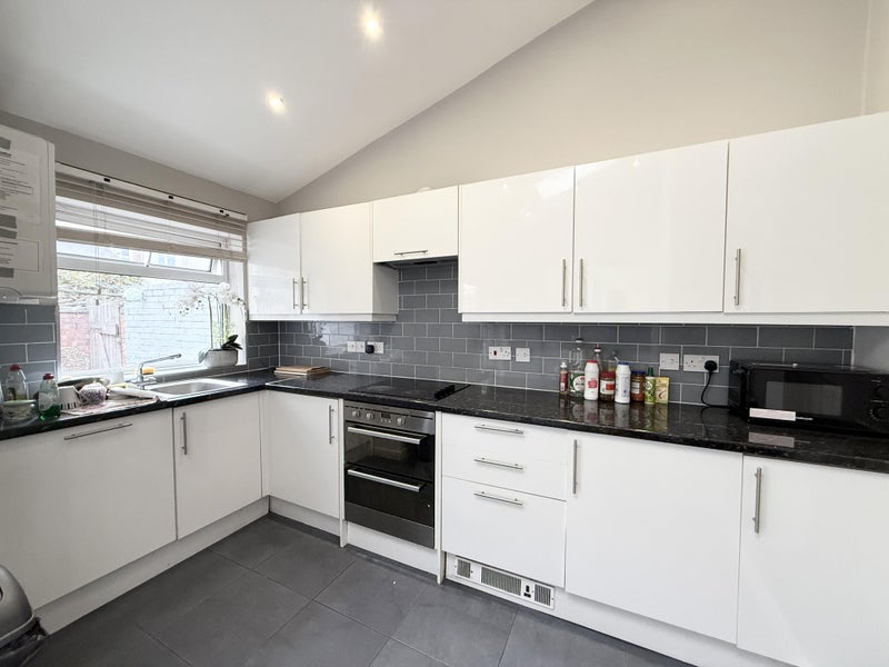 The house has a shared kitchen area which is fully equipped, and each tenant has their own cupboard, fridge and freezer space. There is also a patio garden with a table and chairs, as well as a washing line.