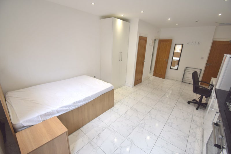 The studio is on the ground floor and comprises from a fully equipped kitchen, part furnished and communal washer dryer. The property also benefits from 1GB fibre WiFi speed and your own private rear garden.