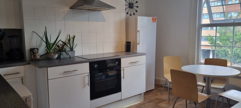 Modern kitchen with all appliances with space to eat and socialise with your fellow housemates.