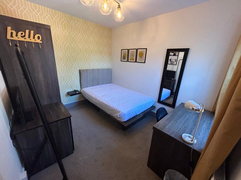 The room itself is a double room and is fully furnished. There are a total of 6 rooms in the house, 2 of which are en suite. You will be sharing a bathroom with one other person. The room is on the second floor and is right next to the bathroom.