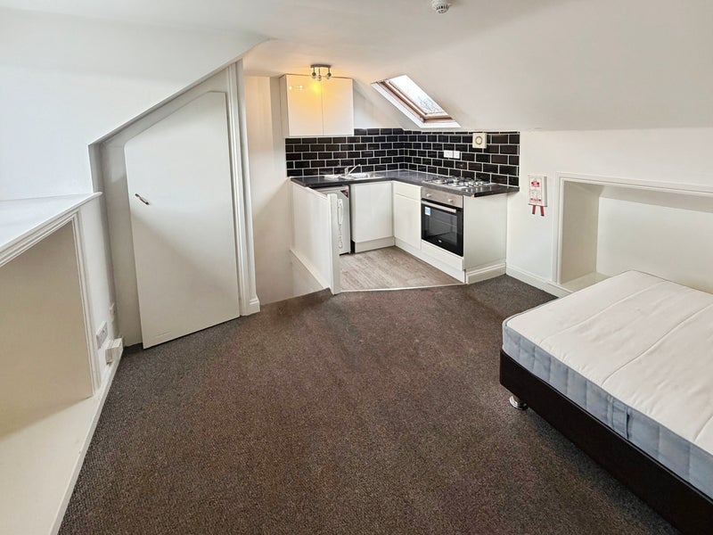 Situated on the top floor of a shared house, this double room benefits from having its own Kitchen area with oven, hob and fridge. Comes with a double bed and built in storage.