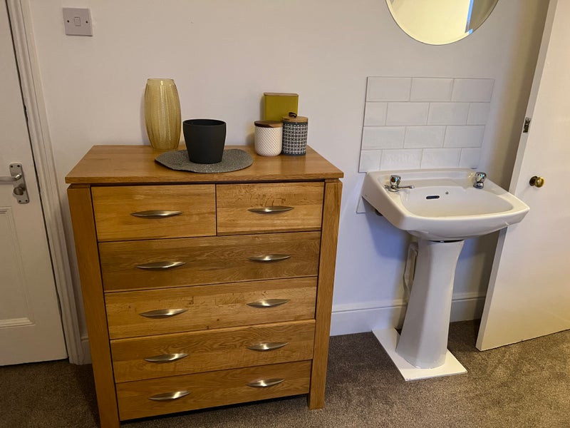 The bedrooms are furnished with contemporary solid oak furniture with double beds (we replace mattresses every 2-3 years - some rooms now have oak ottoman beds), chest of drawers, desk, bookcase, double wardrobe and most have a sink too. We ensure you have enough storage space in your room, along with conveniently placed charging and electrical points, so you can make you room into your home.