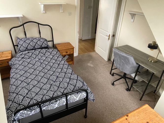 Single room with private bathroom near Reading University and Royal Berkshire Hospital. 2 miles from the Oracle. Regular buses to the town centre.