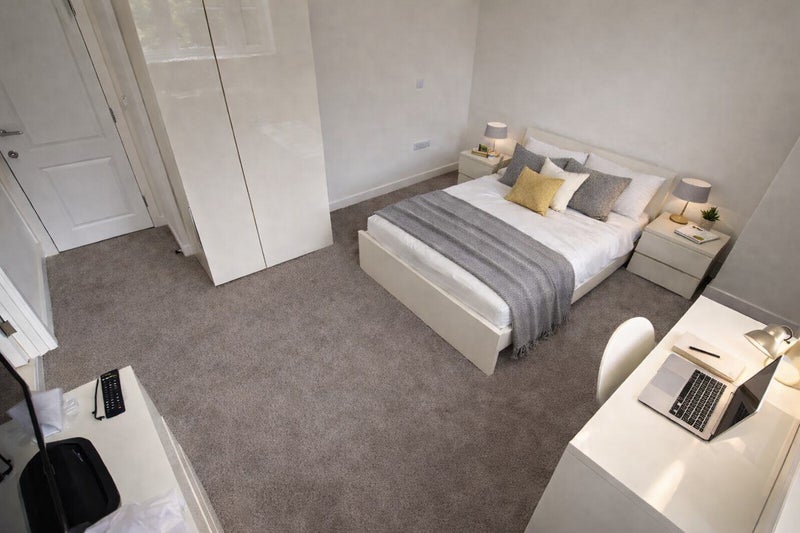 Double Bed, Mattress, 1 x Double wardrobes, 1 x 4 Drawer Chest of Drawers 1 x 2 Drawer Bedside Table, Work Desk & Office chair. 32" Flat Screen TV.