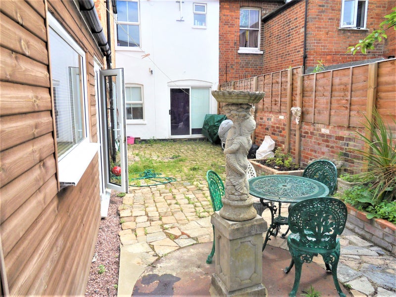 > Shared kitchen and lounge, as well as a courtyard/garden