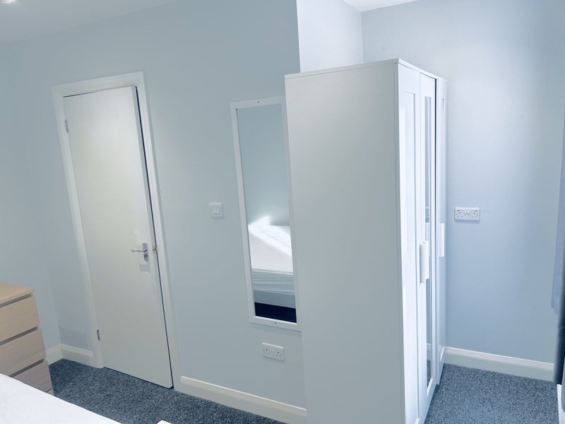Room comes fully furnished with full size double bed, folding desk/chair. Wardrobe & Mirror.