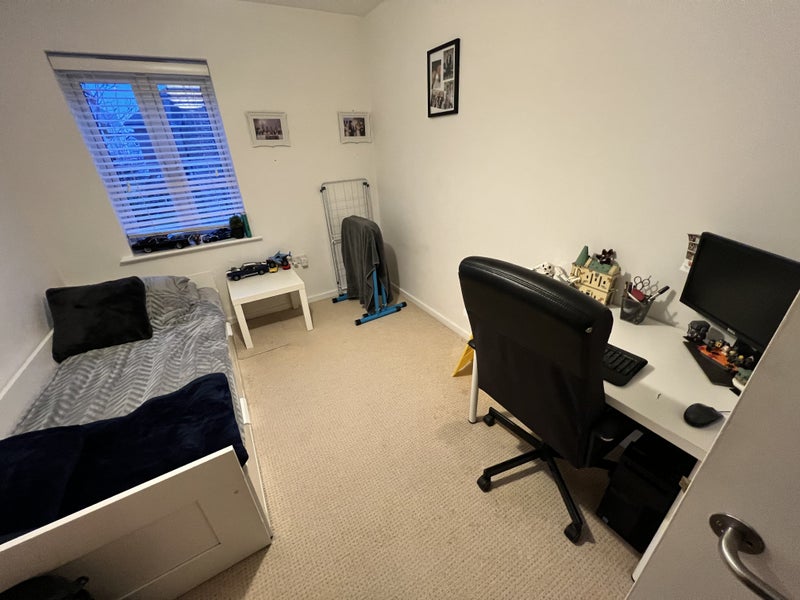 Searching for a flatmate ( female or male) to share a 1st floor 2 bed flat with. Gated development, Kitchen with living space, 2 bedrooms. I occupy the master bedroom, The second bedroom is a standard double. Most bills included in the price including BT fast broadband. Currently in the bedroom is a solid pine wardrobe, Ikea single to double bed , desk with a chair plus the spacious chest of drawers. Free Parking Available on the side residential road, 1 min away. Bike shed for residents.
