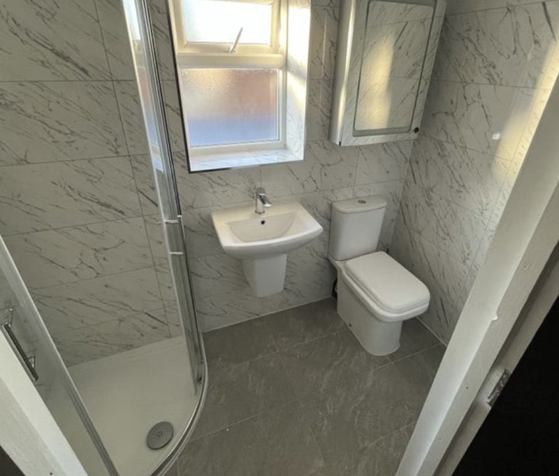 A newly refurbished single en-suite room for rent at £840 per calendar month, available on a sole occupancy basis, with all bills included (council tax, gas, electric, water and fibre broadband). The room is furnished with a single bed and wardrobe and there is a sharing kitchen and dining area in the property