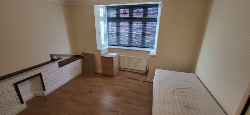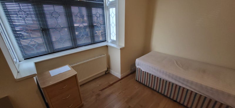 Double room on ground floor. Shared bathroom and shared kitchen facilities. 5 min walk to train station for Elizabeth line. 5 min walk to high street.