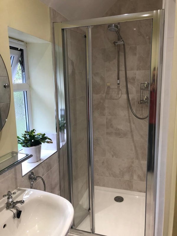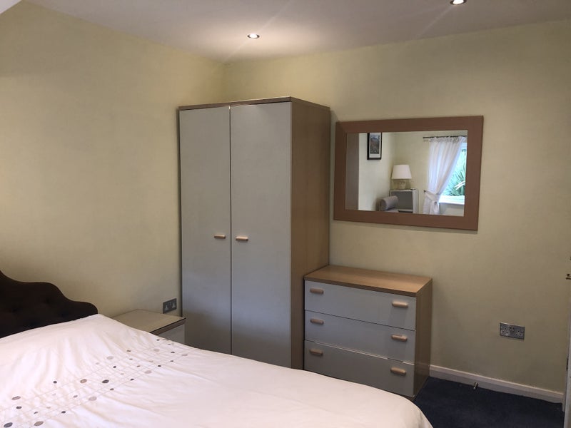 Lovely spacious double bedroom with own shower room in a family home. Situated in a quiet cul de sac with on street parking. Single occupancy only. Fully furnished with double bed, wardrobe, cupboards, desk and TV. En-suite with shower, toilet and sink.