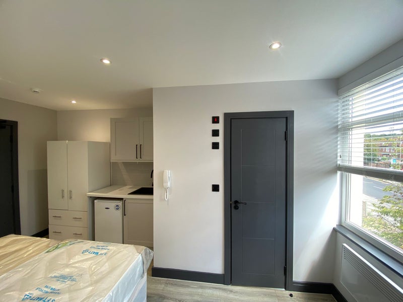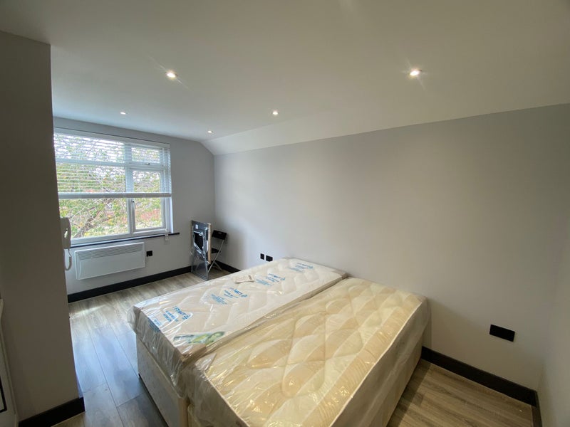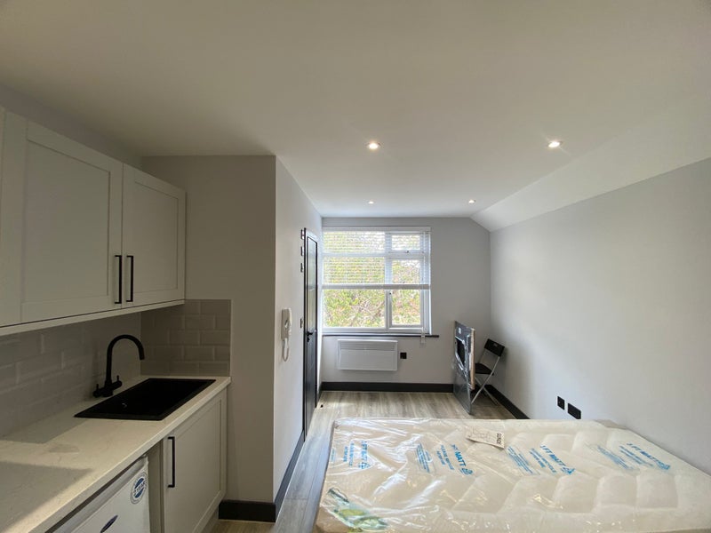 This modern studio flat on top floor offers comfortable, self-contained living with your own private ensuite bathroom. The bright, well-presented space comes furnished with a wardrobe, a mini fridge, and a basin, making it practical and ready to move into.