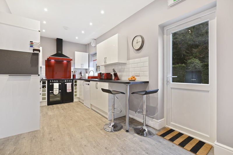 The large modern kitchen is fully equipped with all the cooking utensils, plates and cutlery provided. There is plenty of space for all housemates to cook in, including, a large 3 oven range cooker, dishwasher, and microwave. Everyone is given a separate cupboard and fridge/freezer space. There is a utility area where there is a separate washing machine and dryer.