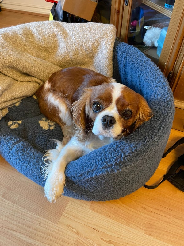 We have 1 pet, Dolly, she is a King Charles Cavalier. Super sweet and gentle, does not bark or lick and is always with us so should not get in your way. She has never been upstairs and only stays downstairs and our middle floor.