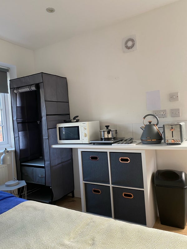 This modern, comfortable annexe has its own private entrance door. It comes fully furnished with a double bed, clothes rail and a shower room with a toilet and sink. The kitchenette provides you with a microwave, a fridge with a small freezer, an electric hob with an extract fan, a toaster a kettle and small air fryer.