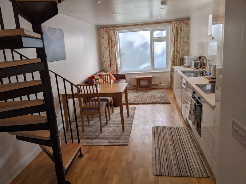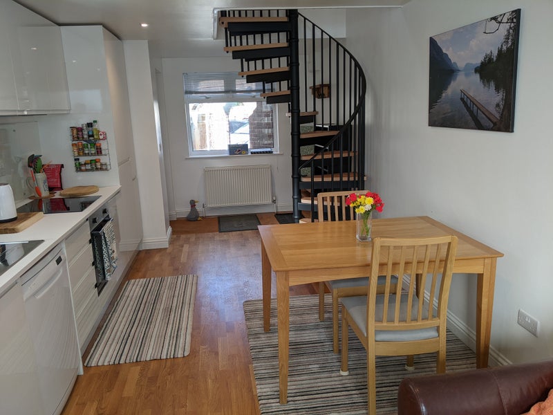 The apartment is over two floors with a feature spiral staircase, is an annex to a family home but is self contained with a separate entrance.
