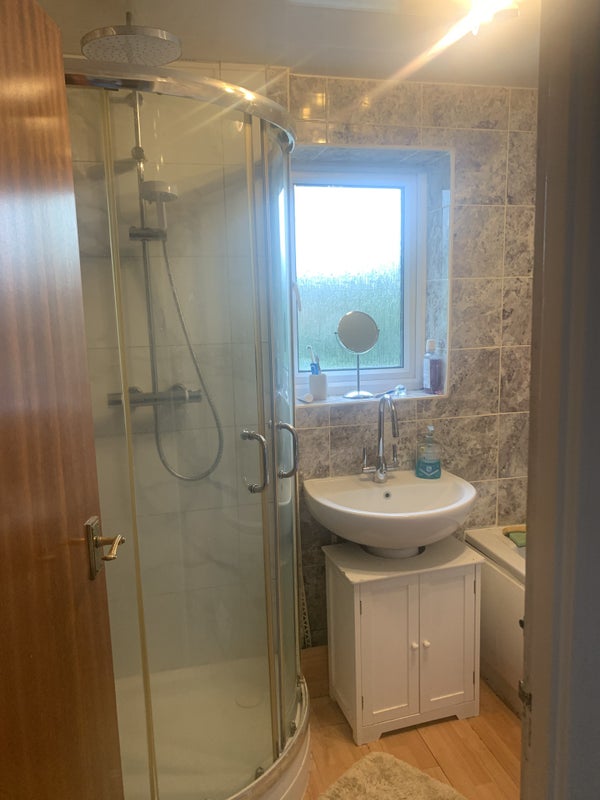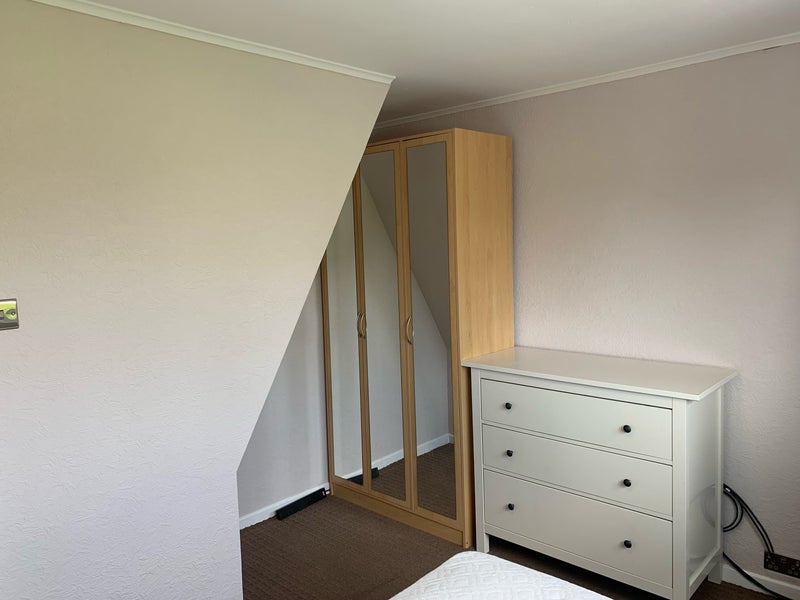 Room fully furnished. Desk, chair and 4K TV in the room. As well as bed, wardrobe and chest of drawers. Bedding not provided. Double glazed windows, gas central heating. Smart radiator valve. Water softener installed.
