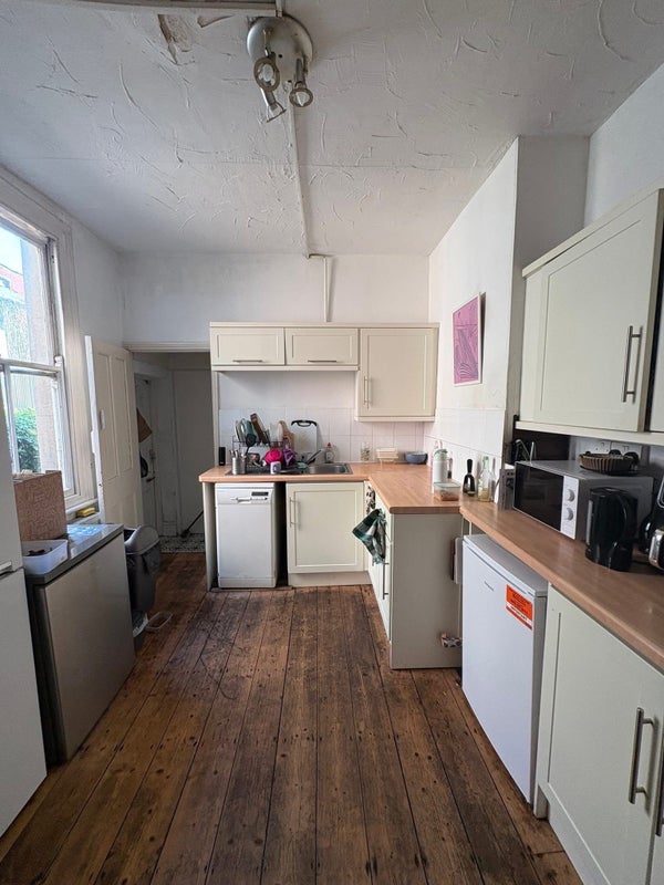 We have a shared kitchen, living room with a dining table, garden and 2 bathrooms, one with a shower & bath. We all pitch in with keeping the communal areas clean and tidy.