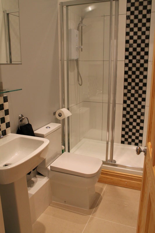The house has 2 bathrooms and 3 toilets, there are 2 showers and 1 bath between the 6 tenants.