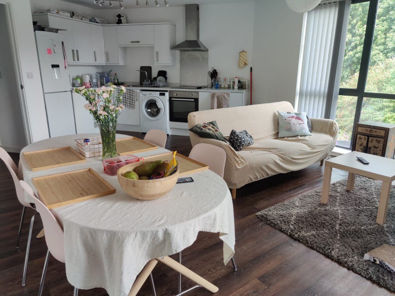 The kitchen is fully equipped with all white goods and the communal lounge area has a comfortable sofa and dining table