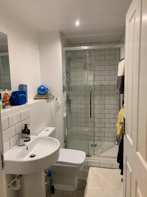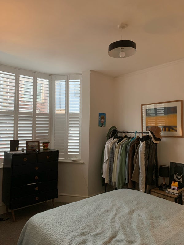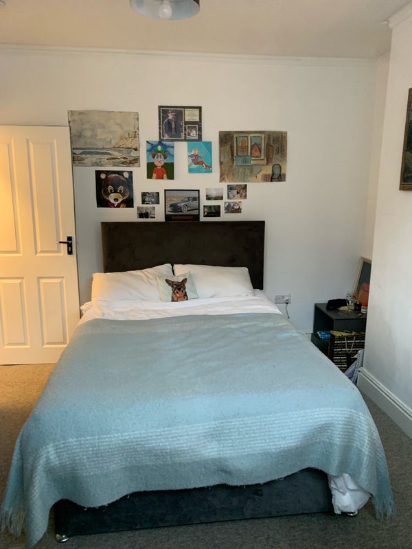 The double bedroom is a modern and comfortable space in a warm home shared with two professionals Matt & Mike. The big bay windows are great for natural lighting in the mornings and daylight hours. It is included with a personal en-suite apart of the living room layout, with a shower, sink and toilet. Fully furnished and carpeted, it has a homely feel to it. It is the only bedroom downstairs, and isn’t noisy area of the house.