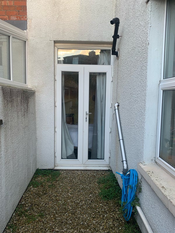 Maelle is leaving so we’re looking for someone to take over her room. The room is partly furnished with a bed and some shelves. The room has a door that leads to the garden
