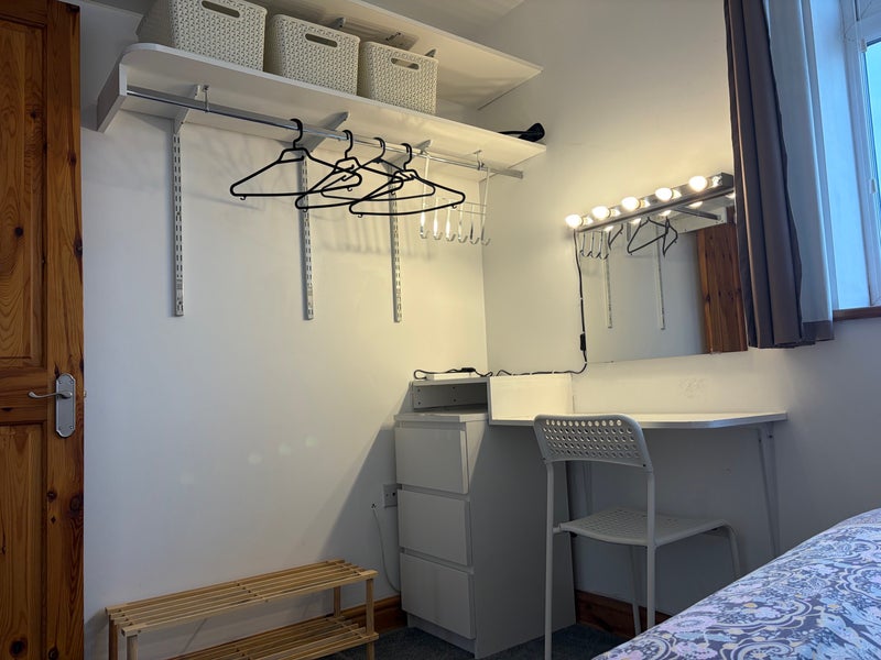 Smart TV, Desk ,chair, shoe rack, coats hooks etc