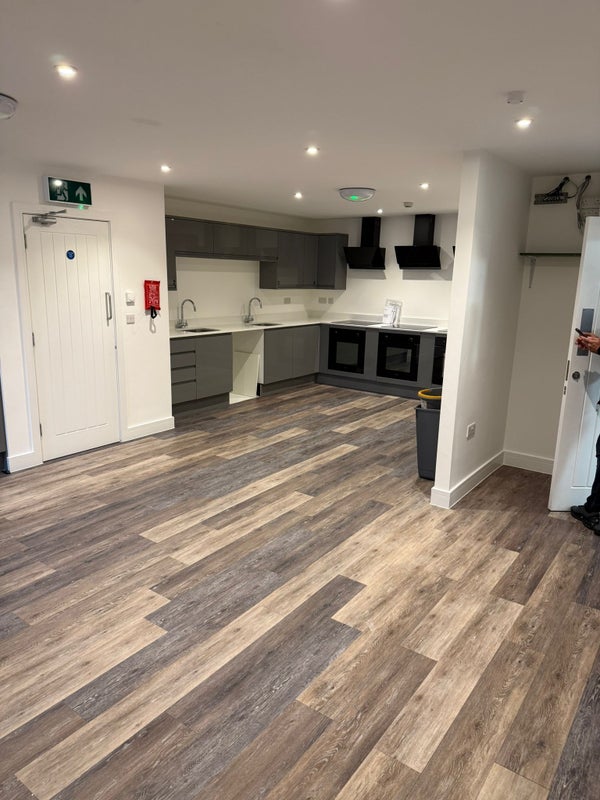Large, social kitchen-diner with brand new appliances (3 hobs and 3 fridges) and a wall mounted smart Tv. There is also a cleaner that visits for all communal areas!