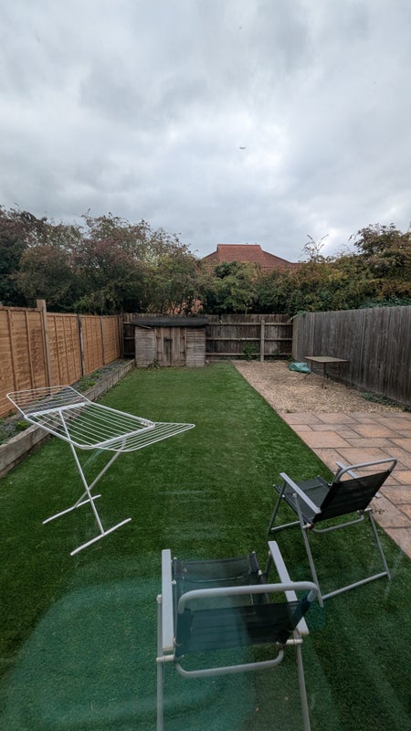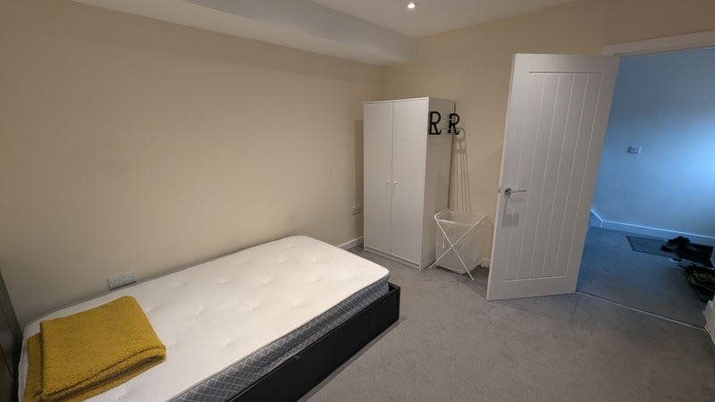 A bright and modern double bedroom available in a new build ground floor house to share with one other working professional.