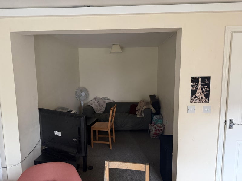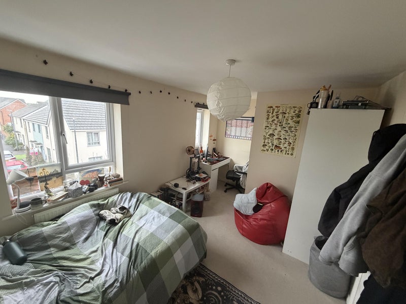 Large top floor bedroom with a shared bathroom (two girls sharing). Rent £730pcm & £1000 deposit (spare room did not let me post the actual deposit amount). Housemates are friendly and sociable enough. House has a free drive way too.