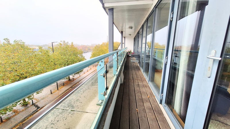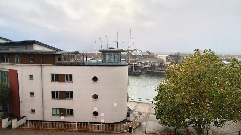 Step outside onto the full-width south-facing balcony for direct views across Bristol's Floating Harbour towards the SS Great Britain, one of the most distinctive outlooks in the city.