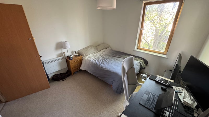 A large furnished double room is available for let in a clean and quiet 2 bed flat. The building has access to a free gym and limited parking is available on site or nearby. The rent covers all bills except Council tax. Furniture is clean and includes a rising desk, large wardrobe and bedside cabinet in the bedroom.