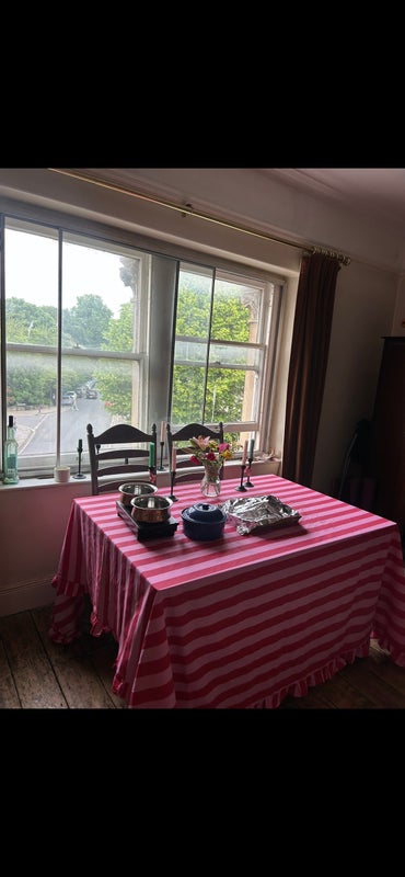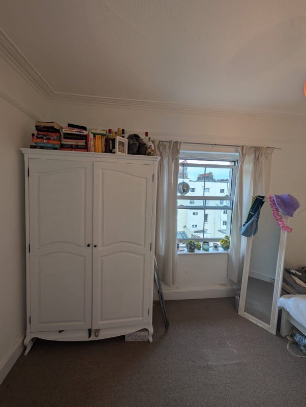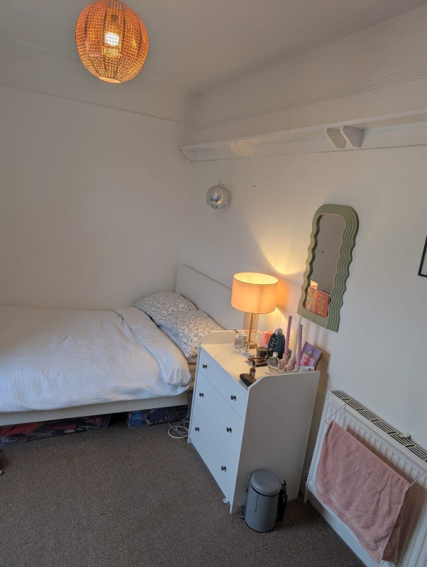 It's a four bedroom flat with a big living/ dining room, the two rooms available are double bedrooms. The bedroom is £525 and you will be sharing a bathroom with Molly and Charlie . It's a shabby chic flat on the top floor of the building. There's no garden but we live opposite a park so perfect for lying out in the sun with a wine or a book.